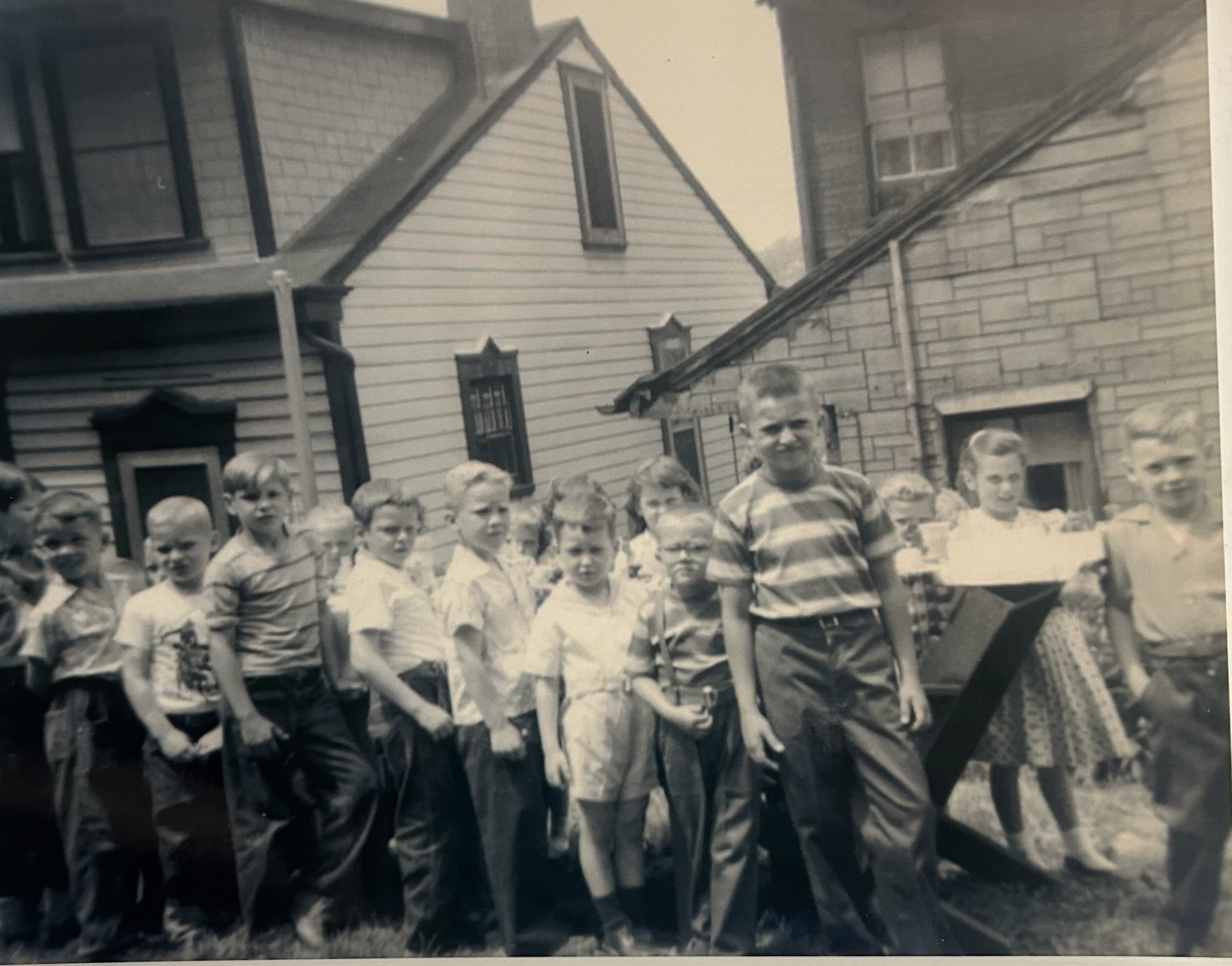 What ever happened to Penny Candy … better yet … what ever happened to Kids Birthday parties at their house? We didn’t have a Chucky Cheese, Dave and Busters or a kid drop off facility to throw a birthday party … we had our house’s and in my case a basement with a large folding table that the kids gathered around to sing Happy Birthday and eat cake. Dad would hang canvas cloth from clothesline to hide his work bench and the downstairs toilet that was in every house back in the day. Mom would have little favor bags to give to each of the neighborhood kids and cousins that were filled with penny candy! Oh yeah, I got carried away for a minute … what ever happened to Penny Candy? In fact, what ever happened to pennies? I hear they are going away also. Penny candy … I’m talkin’ about licorice whips, flying saucer wafers filled with candy beads, wax lips and mustaches, licorice records, candy dots on a paper strip, coconut bars, jaw breakers and bubble gum … in little paper nickel bags. Where could one find penny candy? Well in my case, Lou’s and Mary’s neighborhood store … there was one in every neighborhood where we grew up. How could a young person obtain penny candy at the candy store? We didn’t have money at that early age unless you had a paper route, did errands for neighbors or in the Winter, shovel walks for some cash. However, there were always pop bottles! Pop Bottles you may say … that’s right in the dinosaur days when I grew up… a young person could collect pop bottles and return them to just about any store for two cents on small bottles and a nickel for the quart size bottles. With an armful of bottles, you could cash them in at the candy store and buy a dime bag worth of penny candy! Heck if you went on a buddy bottle hunting spree you could collect enough pop bottles to buy candy for the whole neighborhood! Pop bottles were a major source of income as a kid living on Smithton Street! As I look back on those wonderful days, I kind of feel bad for kids growing up today … we had fun with very little, learned how to survive and be creative learning valuable lessons from a neighborhood that helped raise us! I guess I should explain the photo above … it was my Birthday Party on Smithton Street and in attendance was my cousins, Ronnie and Alfred, Jimmy and Davey … and of course by childhood and lifelong friends like Willie and Junior … yep there were even girls invited to my parties even though I was too young to really appreciate the girls. That is me on the far right of the photo. I miss those good old days … and especially “Lou’s and Mary’s” and “Penny Candy”!